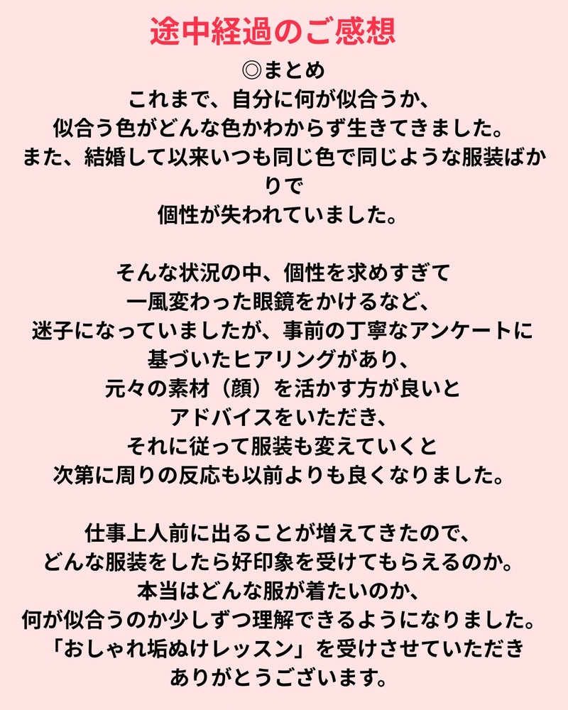 長期講座の【おしゃれ垢抜けレッスン】を受講中の